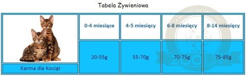| Wiek kotka | 0 - 4 miesiące | 4 - 6 miesięcy | 6 - 8 miesięcy | 8 - 14 miesięcy |