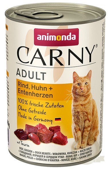 Animonda Carny Adult Wołowina, Kurczak + Kacze serca puszka 400g