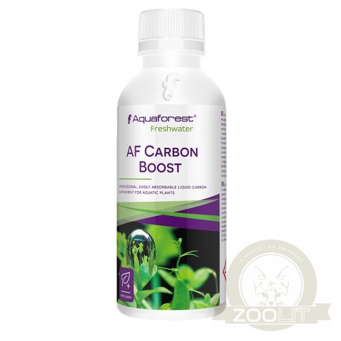 Carbon Boost to znakomity nawóz codziennego stosowania przeznaczony do roślin akwariowych. Zrównoważona kompozycja składników czyni preparat niezwykle efektywnym, gdyż po krótkim czasie stosowania można zauważyć szybki i bujny wzrost roślin. Suplement znajduje zastosowanie zarówno jako główna metoda dostarczania węgla, jak i dodatek wspomagający istniejącą instalację CO2. Preparat pomaga w utrzymaniu odpowiedniego odczynu pH, co wpływa niekorzystnie na rozwój glonów. AF Carbon Boost zaprojektowano z myślą o wszystkich zbiornikach, w których występują rośliny.