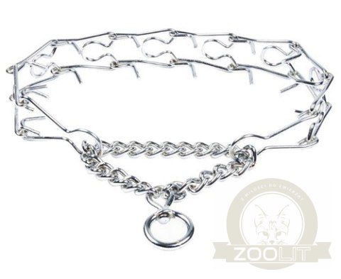 Popularna obroża typu "kolczatka", o budowie łańcuszka, którego ogniwa zakończone są wystającymi, tępo zakończonymi końcami drutu.
