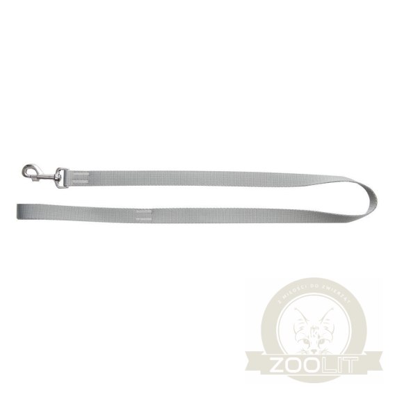 Smycz dla psa miejska z taśmy polipropylenowej, w kolorze szarym. Długość 120cm i szerokość 2,5cm.
