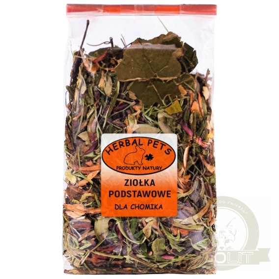 Herbal Pets - Zioła podstawowe dla chomika to specjalnie skomponowana mieszanka roślin leczniczych i wspomagających, dostosowana do codziennych potrzeb żywieniowych chomików. Zawiera naturalne witaminy, sole mineralne i związki bioaktywne, które wspierają prawidłowe funkcjonowanie organizmu, szczególnie układu pokarmowego i odpornościowego.