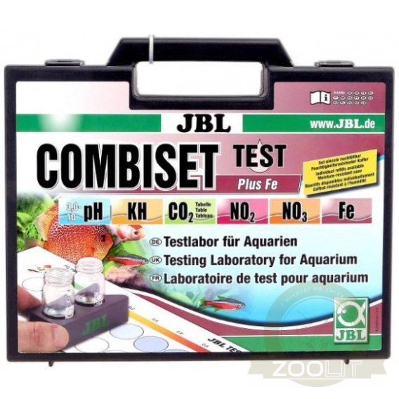 JBL Combi Set to praktyczny zestaw testów akwarystycznych mieszczących się w wygodnej walizce. Testy te pozwalają ustalić wartości parametrów takich jak pH, KH, NO2, NO3, Fe. Dodatkowo dołączono tabelę do przeliczania poziomu CO2 w zawartego w wodzie. Kontrola tych parametrów jest podstawą i kluczem do utrzymania ładnego wyglądu roślin oraz dobrej kondycji mieszkanców akwarium.