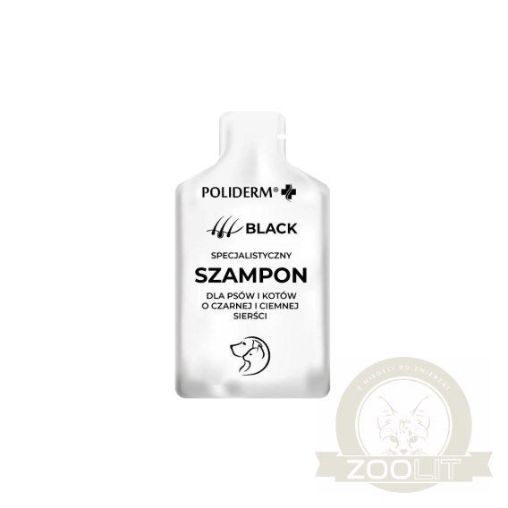 Szampon Poliderm® Black został stworzony z myślą o psach o ciemnej sierści. Dzięki swojej unikalnej formule wzmacnia naturalną barwę sierści, nadając jej głębszy odcień i zdrowy blask. Działa antyoksydacyjnie, przeciwzapalnie, przeciwalergicznie oraz antyseptycznie, co wspomaga leczenie problemów skórnych i pomaga w codziennej pielęgnacji skóry.