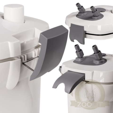 - Łatwość Obsługi i Czyszczenia: Złączki na węże umieszczone na pokrywie filtra umożliwiają łatwe odłączenie i dostęp do wnętrza filtra bez potrzeby opróżniania węży. To sprawia, że czyszczenie i konserwacja są szybkie i bezproblemowe.