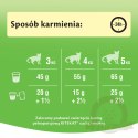 Kot o masie 5 kg potrzebuje 65 g jedzenia suchego lub 25 g jedzenia suchego i 2,5 saszetki pokarmu mokrego dziennie.