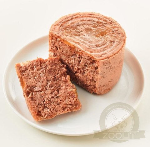 18% kaczki (mięso mięśniowe, serca), wątroba drobiowa, żołądek drobiowy, ryż (gotowany), żołądek, skóra drobiowa, całe jajo, minerały.