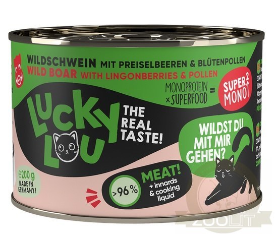 Lucky Lou Supermono jest karmą pełnoporcjową dla kotów. Nie zawiera zbóż ani cukru. Mokre, wysokiej jakości jednobiałkowe jedzenie, które przypadnie do gustu kocim smakoszom, również wrażliwym.
