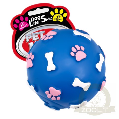 • Pet Nova zabawka gumowa - piłka ze wzorem łapek i kości niebieska 9cm