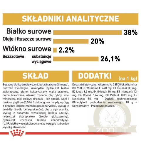 ROYAL CANIN British Shorthair Kitten to karma opracowana specjalnie dla kociąt rasy brytyjski krótkowłosy, zapewniająca odpowiedni i harmonijny rozwój kocięcia. Układ immunologiczny kocięcia nie jest w pełni rozwinięty, dlatego wymaga wsparcia w postaci odpowiednich składników pokarmowych. Opatentowany kompleks współdziałających przeciwutleniaczy, zawierający witaminę E, sprzyja rozwojowi naturalnych mechanizmów obronnych. Układ pokarmowy kocięcia rozwija się do 12 miesiąca życia. Dla zdrowia przewodu pokarmowego ważne są białka wysokiej jakości, dlatego karma zawiera białka L.I.P., wyselekcjonowane ze względu na bardzo wysoką strawność. Zawiera także prebiotyki sprzyjające równowadze flory bakteryjnej jelit. Karma odpowiednia również dla kotek w okresie ciąży i podczas laktacji.