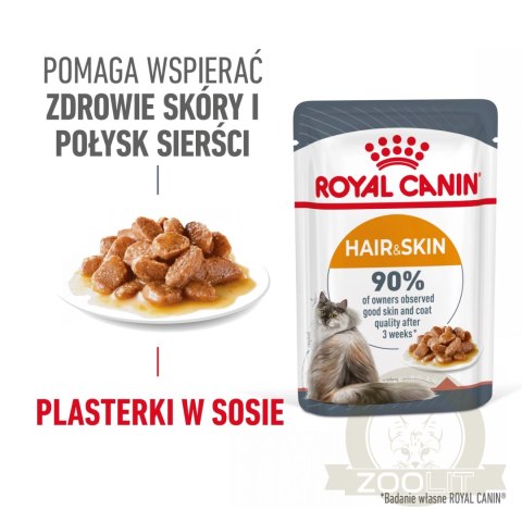 Karma mokra w sosie dla kotów powyżej 1 roku życia z problemami skórnymi i matową sierścią. Opakowanie zawiera 1020g.