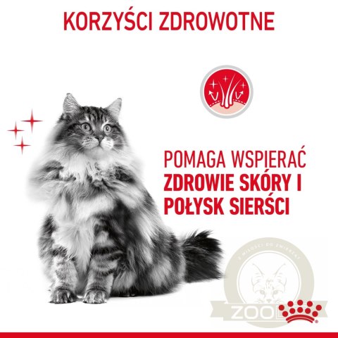Karma ROYAL CANIN Intense Beauty w sosie charakteryzuje się wysoką zawartością kwasów tłuszczowych omega 3 i omega 6, które sprzyjają zdrowej skórze i pięknej sierści, będących odzwierciedleniem prawidłowej kondycji kota. Karma ROYAL CANIN Intense Beauty w sosie została opracowana z myślą o zdrowej skórze i pięknej sierści u kotów powyżej 1 roku życia.