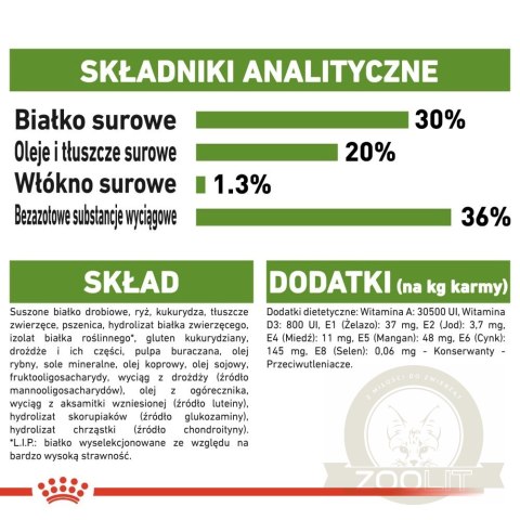 Jeśli Twój kot lubi przebywać na świeżym powietrzu i prowadzi aktywny tryb życia, ważne jest, aby zapewnić, że jego dieta skutecznie wspiera jego naturalne mechanizmy obronne. Karma ROYAL CANIN Outdoor charakteryzuje się wysoką zawartością energii i kalorii, dzięki czemu spełnia wymagania żywieniowe kotów prowadzących aktywny tryb życia na świeżym powietrzu. Karma ROYAL CANIN Outdoor zawiera specjalną formułę odżywczych przeciwutleniaczy, dzięki czemu wspomaga układ odpornościowy kota, a dodatek prebiotyków wspiera florę jelitową w celu zapewnienia optymalnego zdrowia jelit.