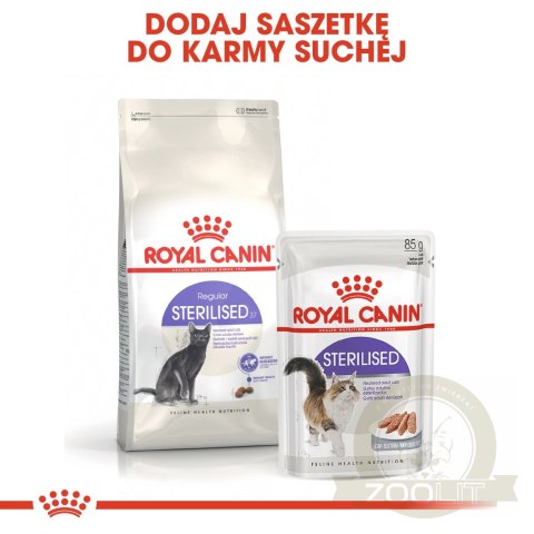 Po sterylizacji kot może wymagać zmiany karmy na taką, która będzie dostosowana do zmienionych potrzeb energetycznych. Karma ROYAL CANIN Sterilised charakteryzuje się umiarkowanym poziomem tłuszczu, dzięki czemu sprzyja utrzymaniu idealnej masy ciała. Odpowiedni bilans składników mineralnych w karmie ROYAL CANIN Sterilised wspomaga ochronę układu moczowego, a podwyższony poziom białka sprzyja utrzymaniu masy mięśniowej. Karma dla kotów sterylizowanych od 1 do 7 roku życia.