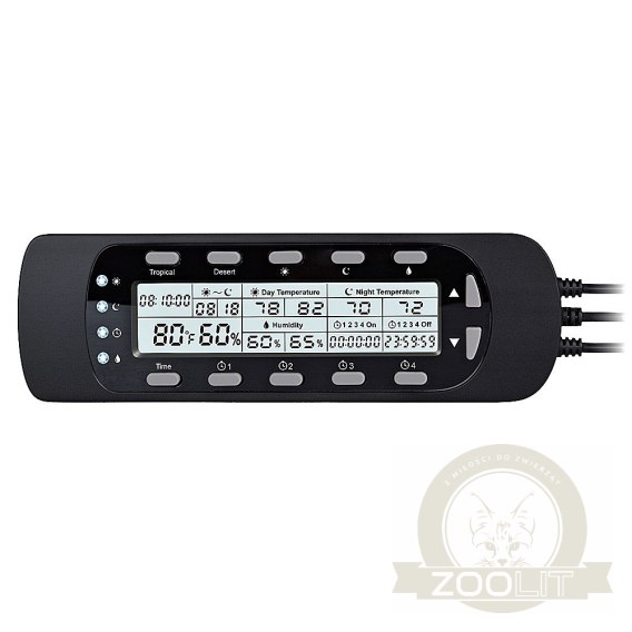 - funkcja "desert" i "tropical" szybko zaprogramujesz i skorzystasz z wprowadzonych danych dla zwierząt pustynnych lub tropikalnych