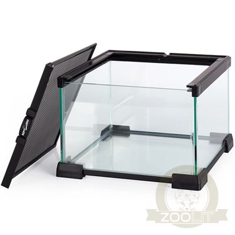 Terrarium serii AK to proste w budowie o obsłudze terrarium szklane. Jest całkowicie wodoszczelne, a jego największa zaletą jest wykonana z stali górna siatka wentylacyjna. Siatka zapewnia odpowiednią cyrkulację powietrza oraz umożliwia zamontowanie oświetlenia grzewczego na terrarium. Górna siatka posiada szczelnie zamykany otwór przeznaczony do karmienia oraz jest w całości wysuwana.