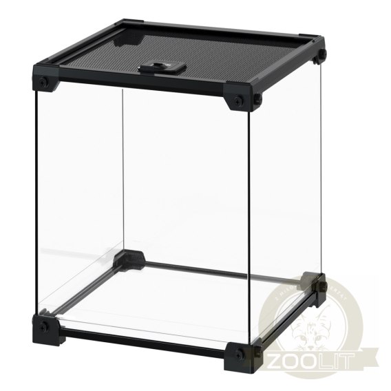 Terrarium szklane z uchylaną górną pokrywą wykonaną z wodo i ognioodpornej stalowej siatki. Do tego małe wieczko na podawanie pokarmy i wodoszczelne dno. Całość bardzo kompaktowa i łatwa w użytku. Dla mniejszych zwierząt, które nie wymagają wiele miejsca. Terrarium idealne dla młodszych adeptów tropikalnych zwierząt, jak i na biurko. Jest też doskonałym kompromisem pomiędzy: "chcę mieć terrarium - ale za bardzo nie mam na nie miejsca w domu"