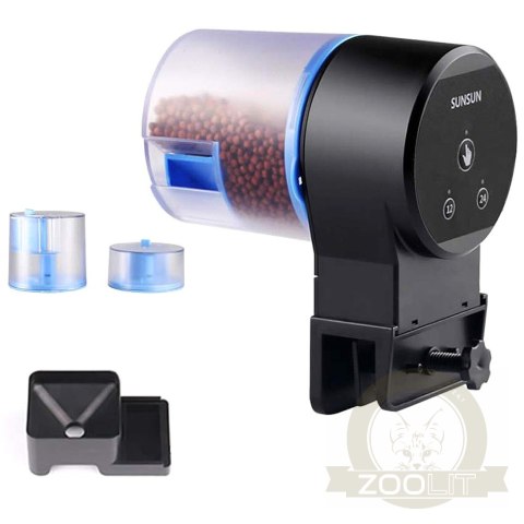 Dozownik automatyczny SunSun może podawać pokarm o postaci granulek do 3mm średnicy i każdy w postaci płatków.