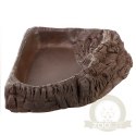 Rogowa miska na wodę i pokarm. Wygląda jak kawałek starego pnia drzewa. To świetna dekoracja terrarium, pełniąca jednocześnie ważną rolę. Rogowy kształt pomoże Ci umieścić miskę w rogu terrarium zaoszczędzając miejsce wewnątrz.