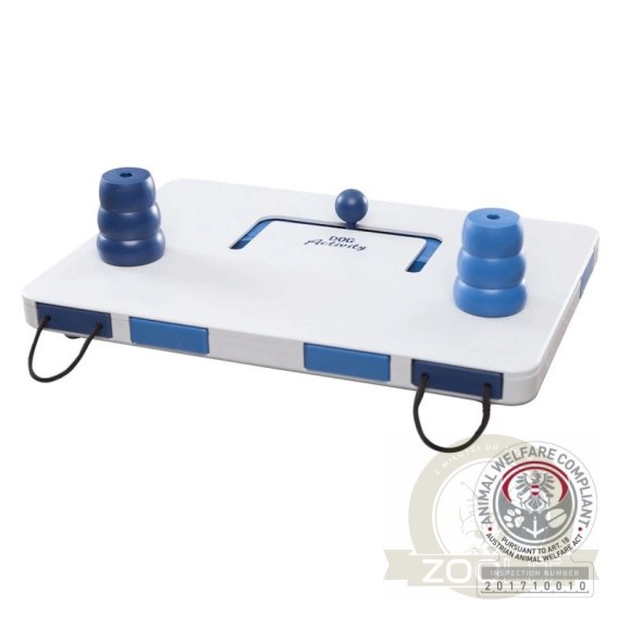 Wymagająca dużo uwagi i umiejętności gra strategiczna dla psów - pies uczy się jak zdobyć przysmaki otwierając szuflady za pomocą pętli i przesuwanego suwaka.