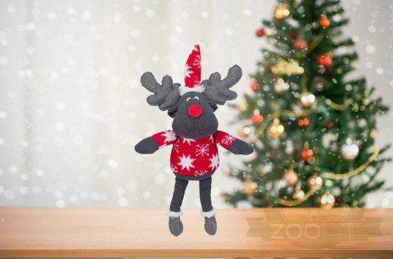 Pluszowy renifer dla psa 42cm to miękka maskotka, którą Twój pies pokocha. Z uwagi na rozmiar ta zabawka dla psa sprawdzi się zarówno w przypadku ras małych, jak też średnich czy dużych. Renifer jest uszyty z wytrzymałego materiału za pomocą mocnych nici, dzięki czemu powinien wytrzymać również bardziej energiczne zabawy.