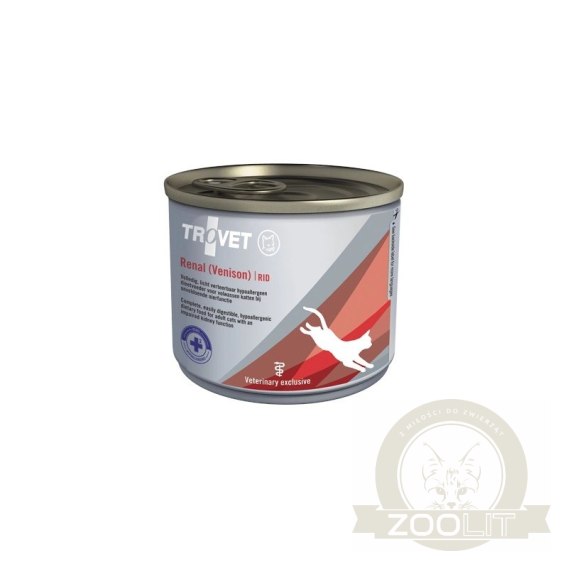 Trovet Renal RID Dziczyzna to dieta mokra dla dorosłych kotów z problemami nerkowymi, wspierająca zdrowie układu moczowego i łagodząca zmiany metaboliczne. Karma z dziczyzną, ryżem i olejem rybnym, obniżony poziom fosforu.